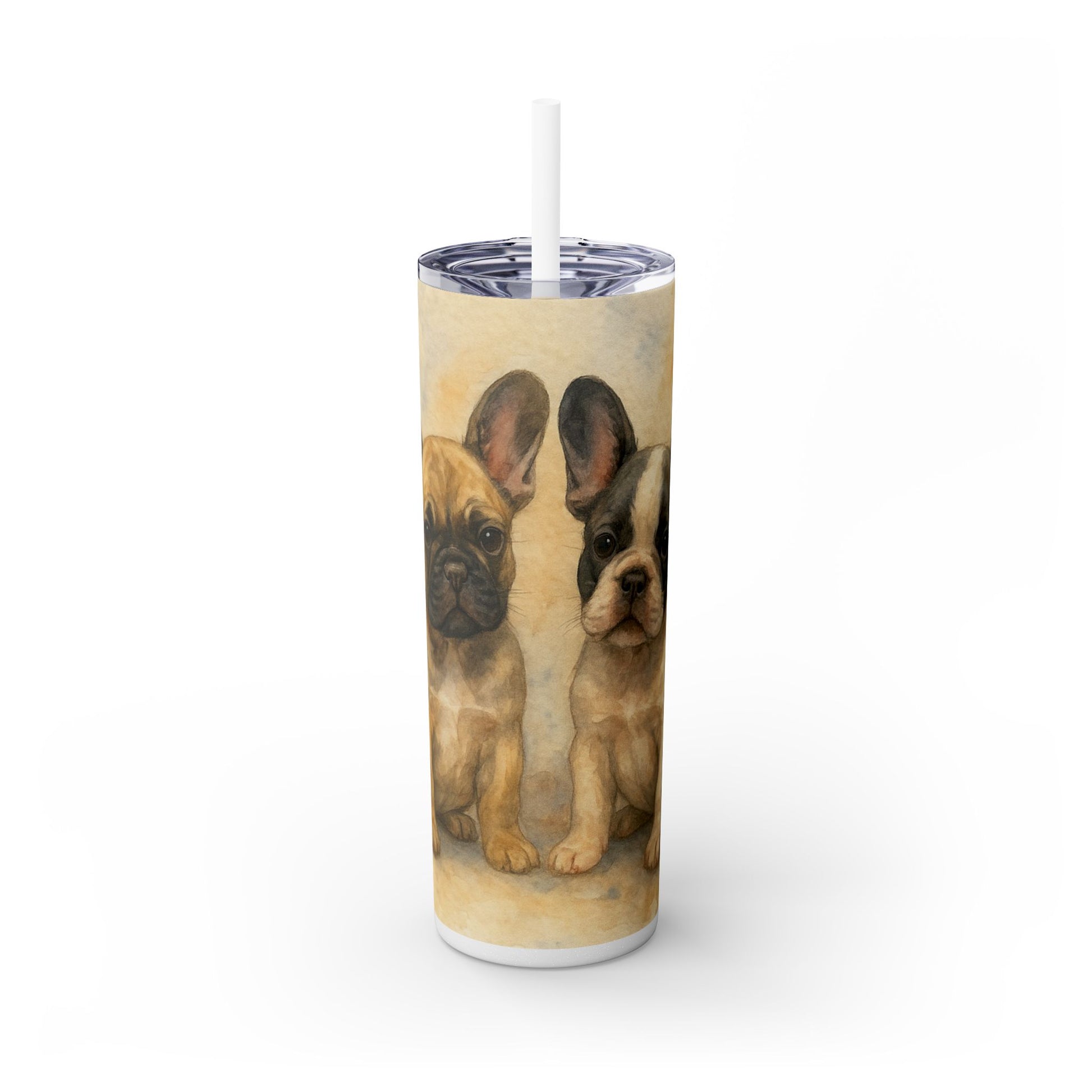 Vaso con pajita de cachorros de bulldog francés, 20 oz