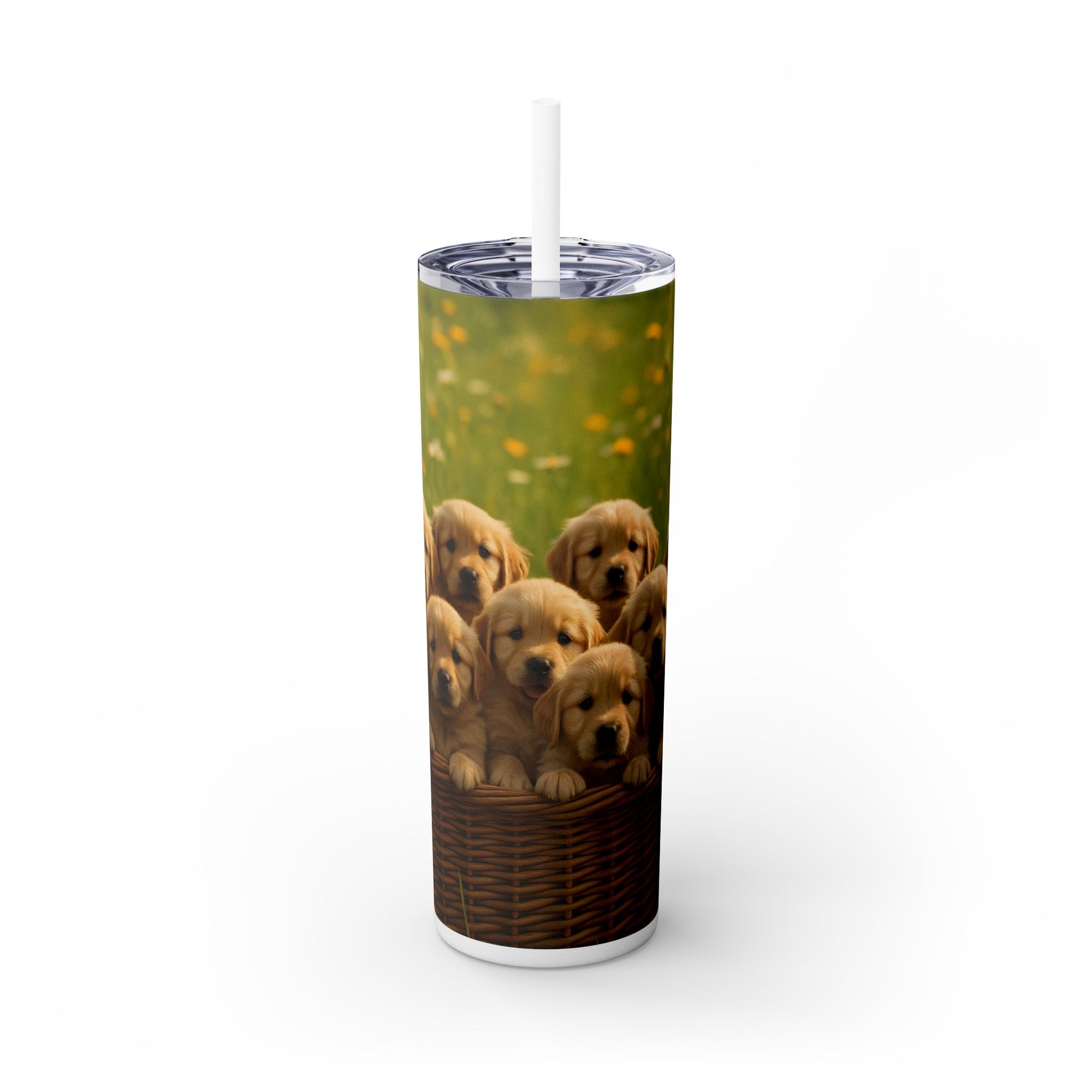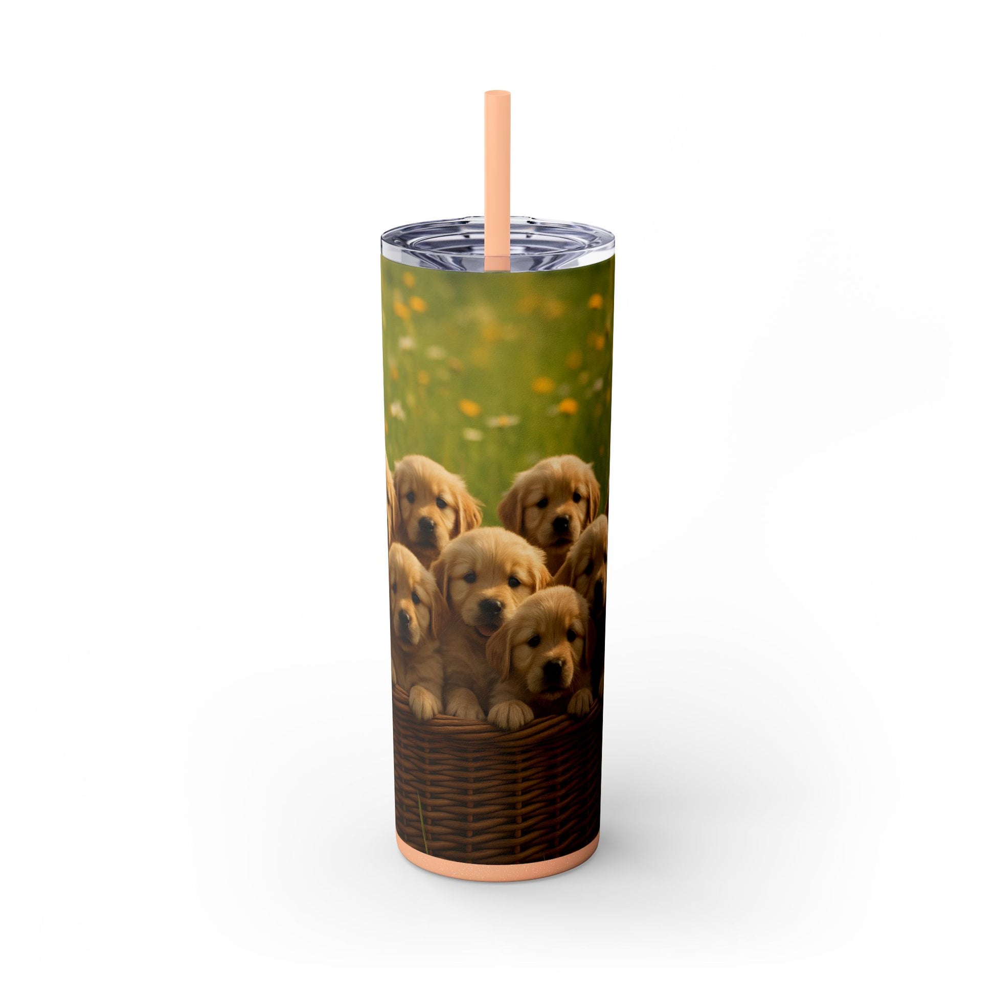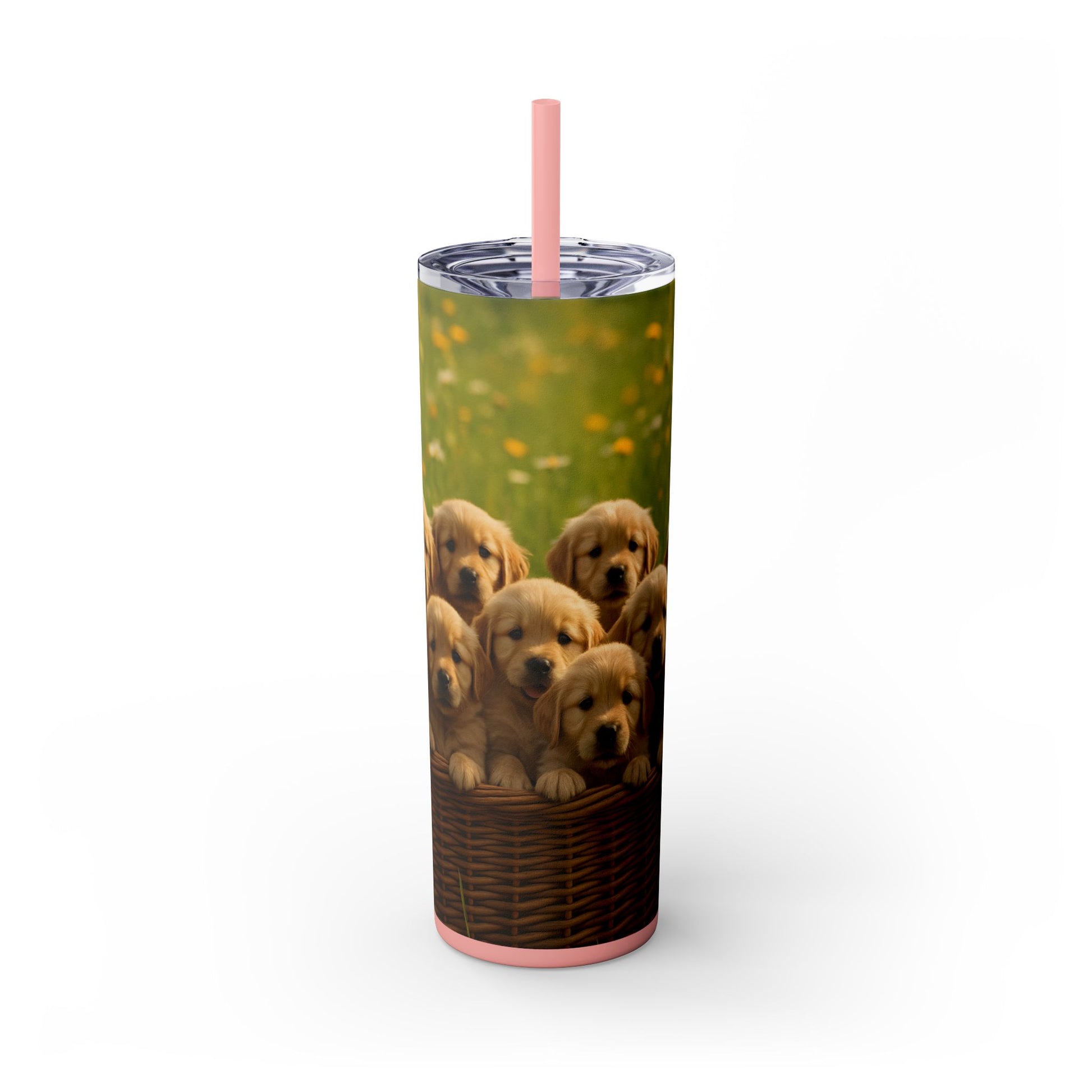 Gobelet isotherme avec paille, motif chiots Golden Retriever, 590 ml