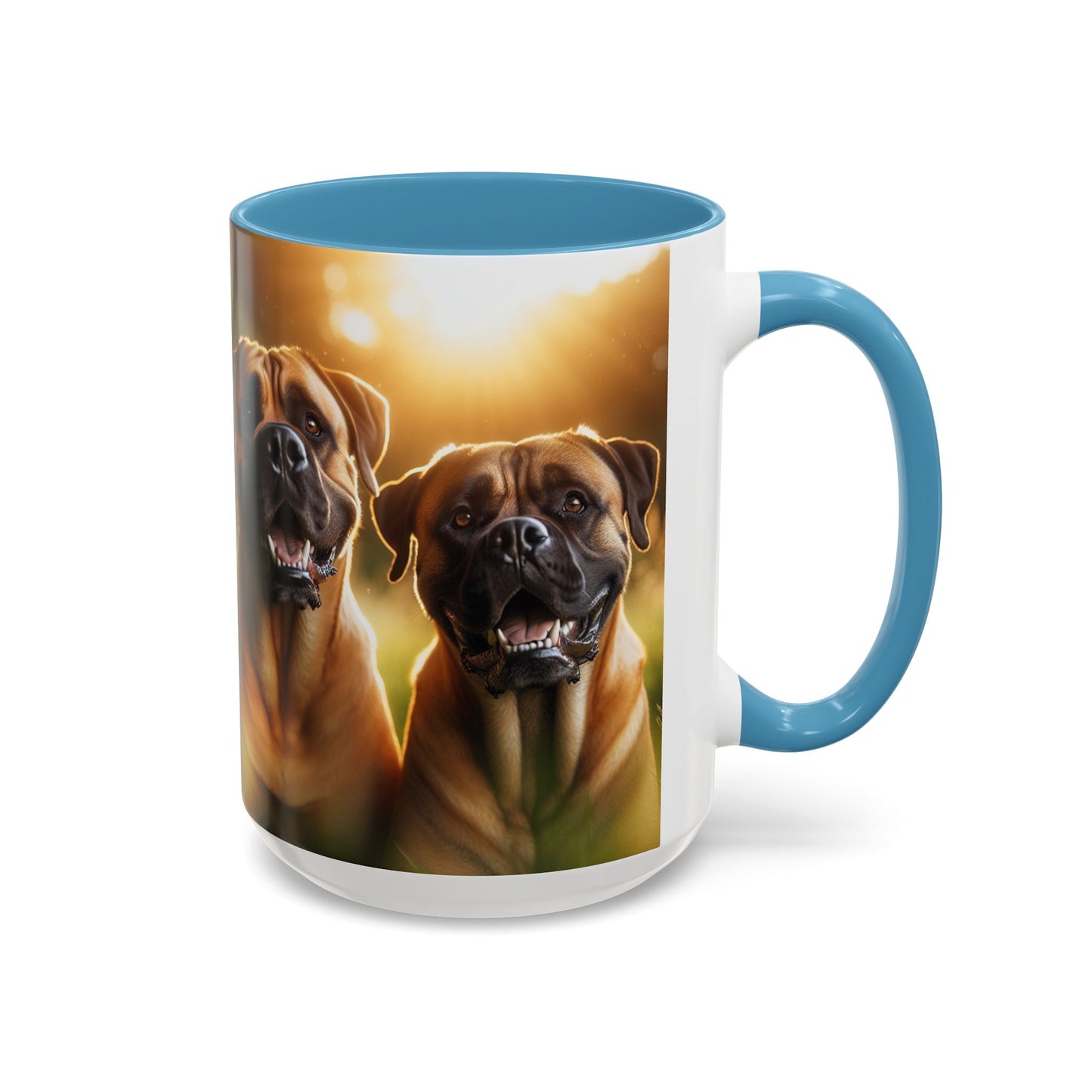 Boerboels Accent Coffee Mug - Perfect Gift for Dog Lovers. This vibrant mug is microwave and dishwasher safe, with a glossy finish and eye-catching color contrast. Ideal for dog lovers, this mug is perfect for enjoying a cozy cup of coffee or tea during the holidays.