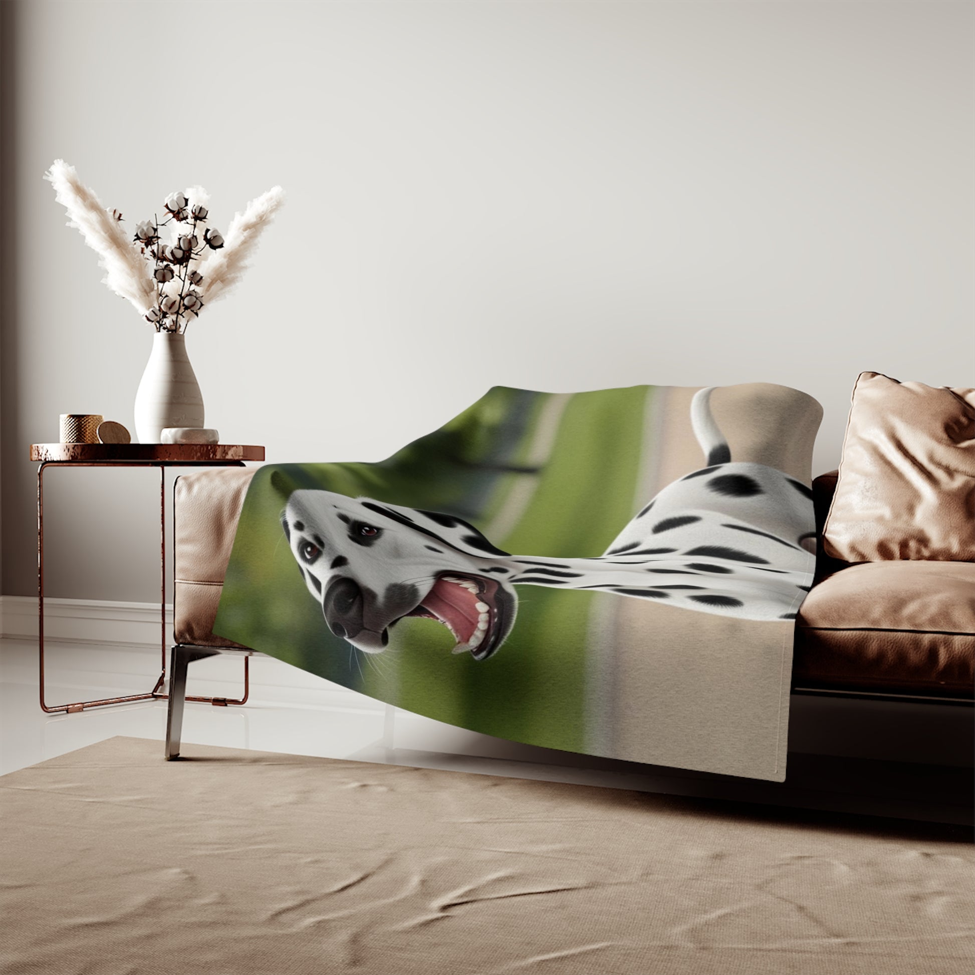 The Dalmatian Sweatshirt Blanket is perfect for cozying up on chilly nights or adding a pop of color to your living space. Its vibrant design gives off a fun and laid-back vibe, making it a great addition to any dog lover's collection. This blanket is relevant for dog lovers, beach enthusiasts, and anyone looking to add a touch of whimsy to their decor. Perfect for gifting during summer, birthdays, or as a housewarming present.