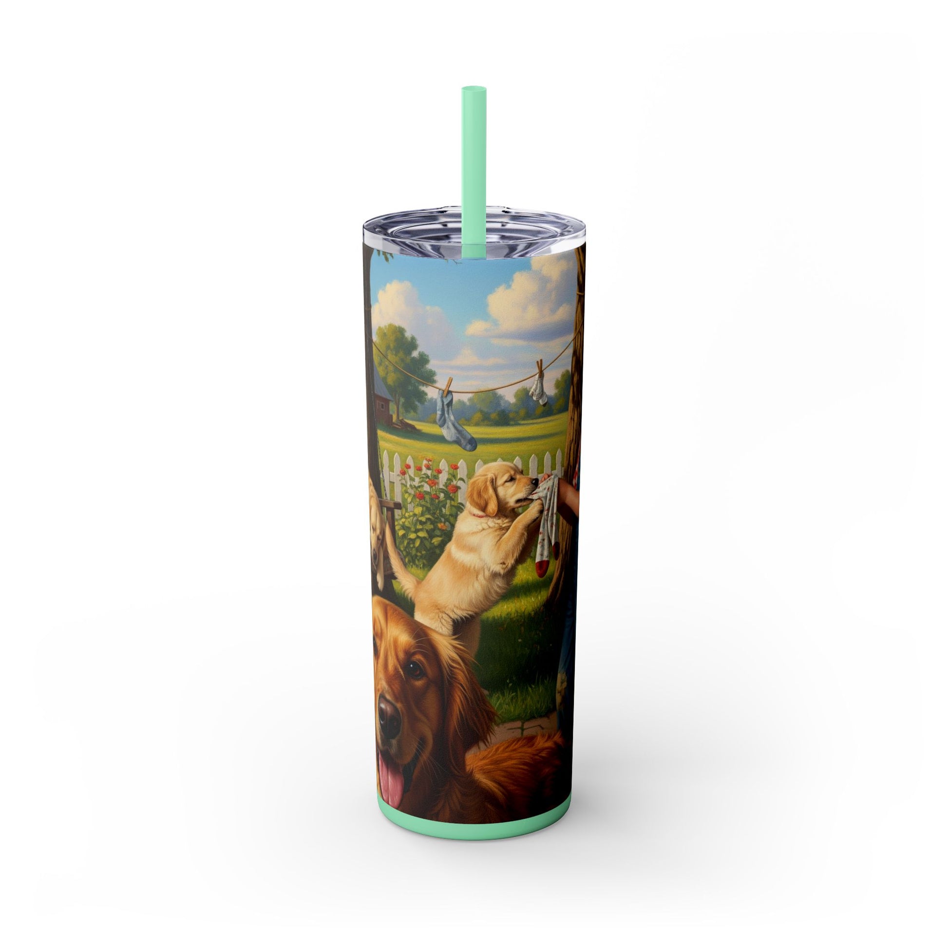 Golden Retriever Skinny Tumbler with Straw, 20oz