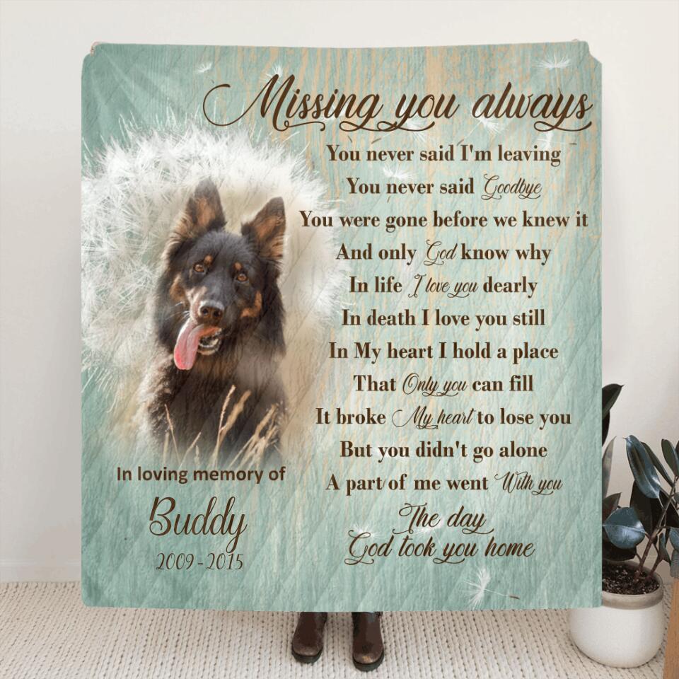 Personalized Remembrance Quilt/Fleece Blanket - Memorial Gifts For Loss Of Pet - Missing You Always - GTWDM6