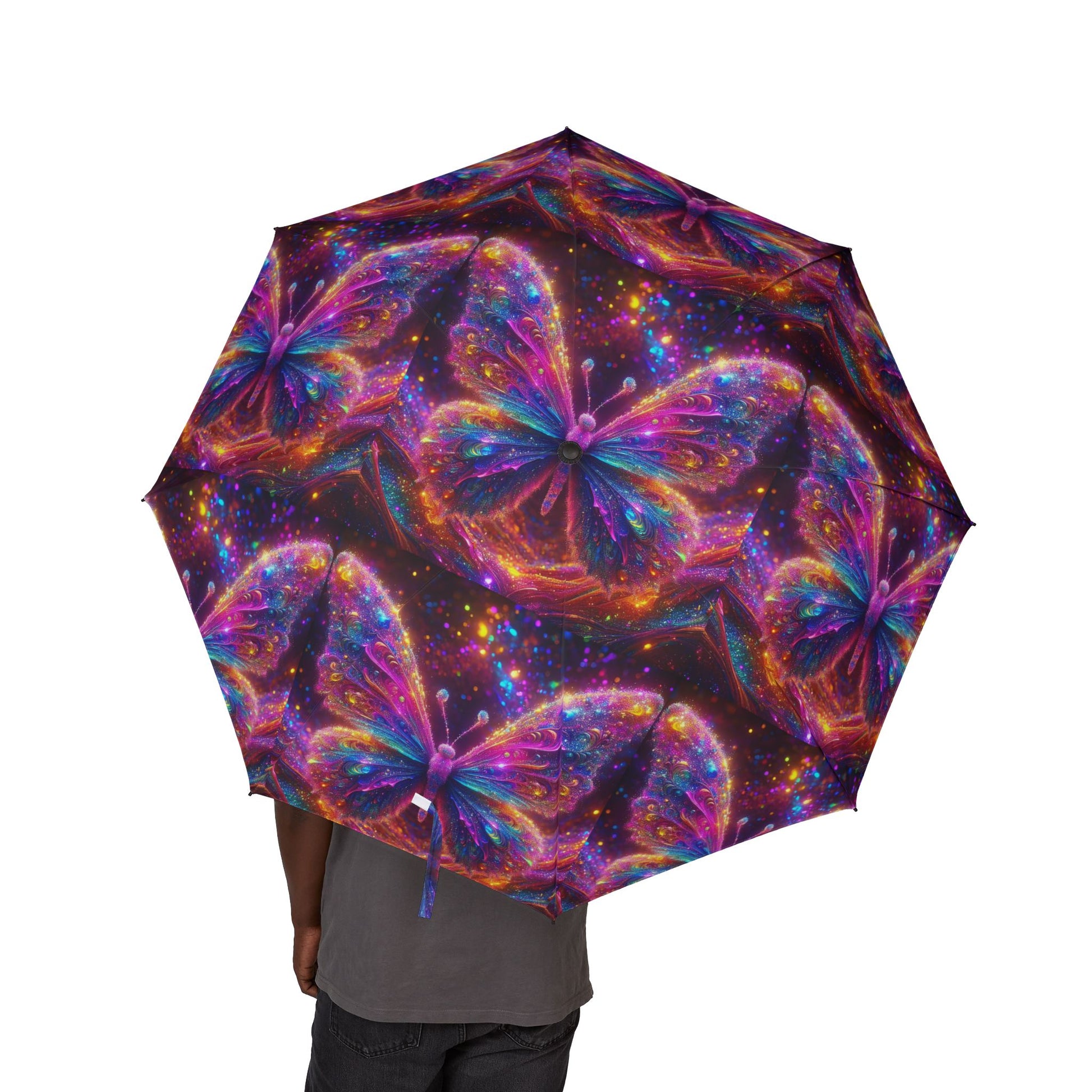 Psychedelic Glittery Butterfly Semi-Automatic Foldable Umbrella