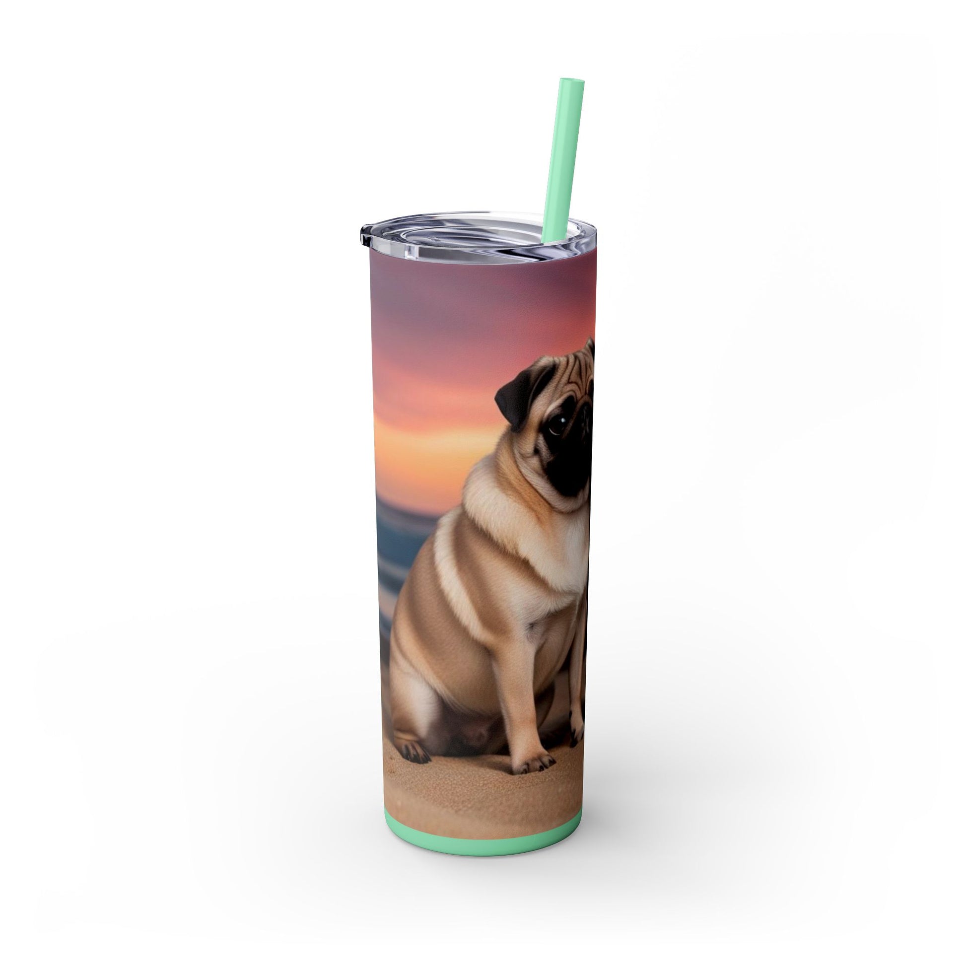 Pug Love Skinny Tumbler with Straw, 20oz