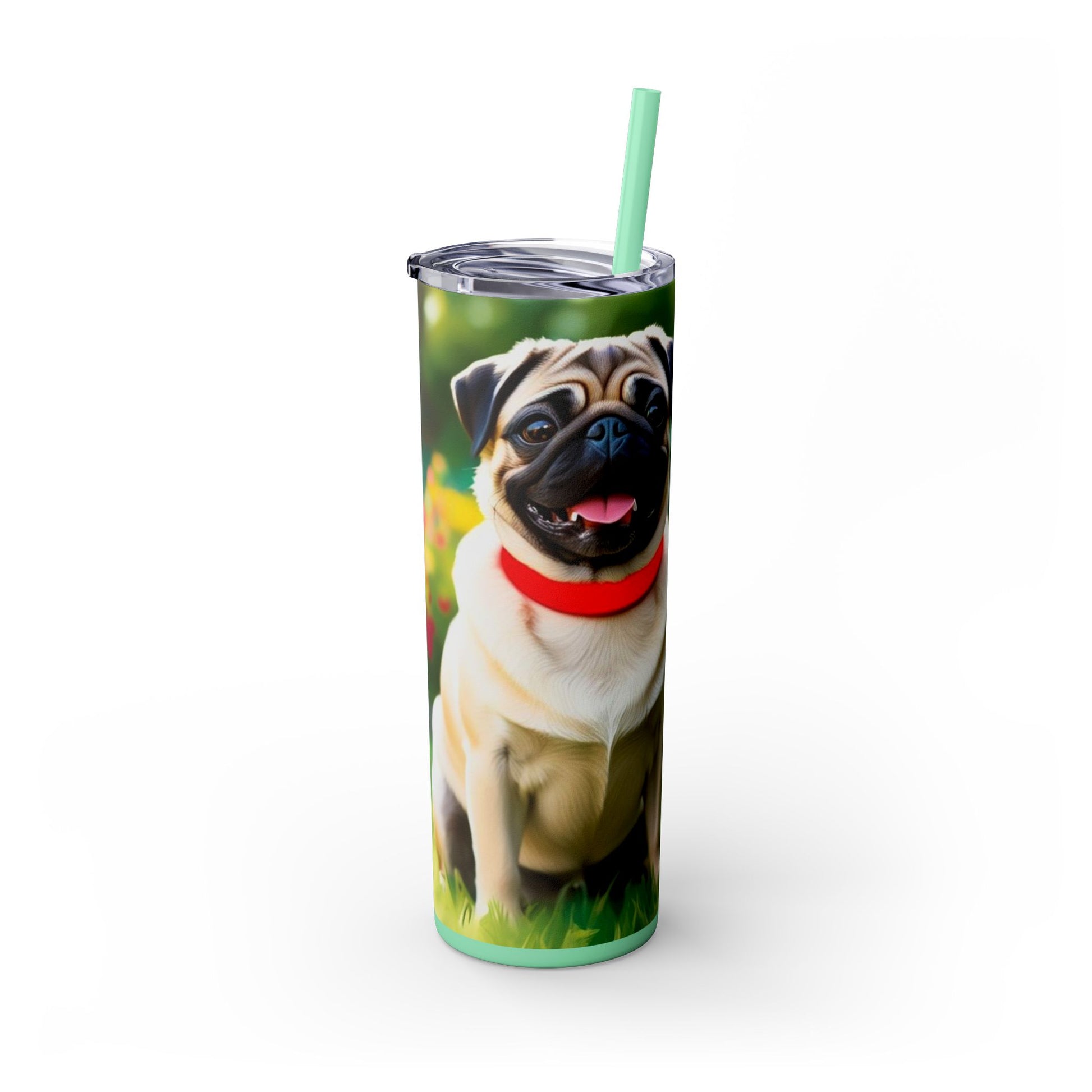 Pug Skinny Tumbler with Straw, 20oz