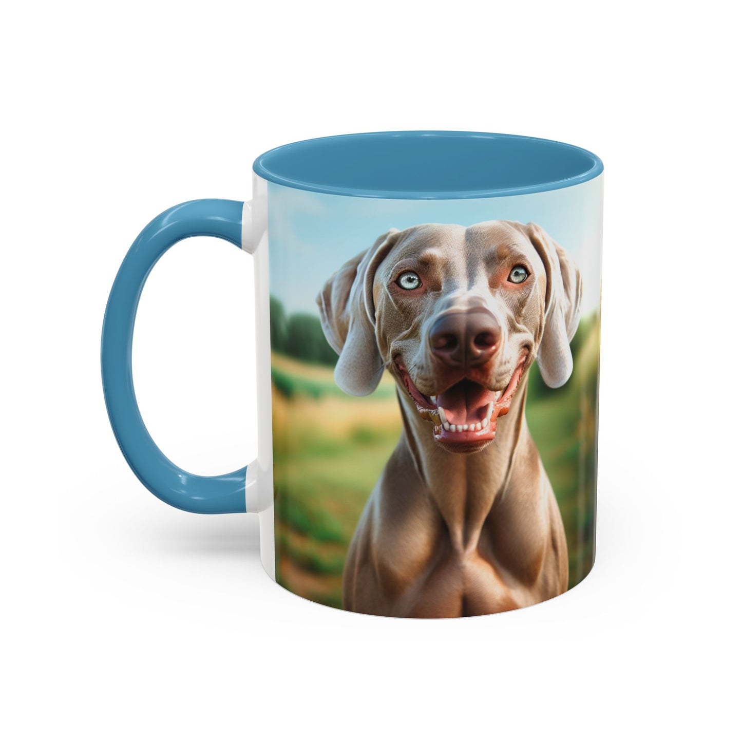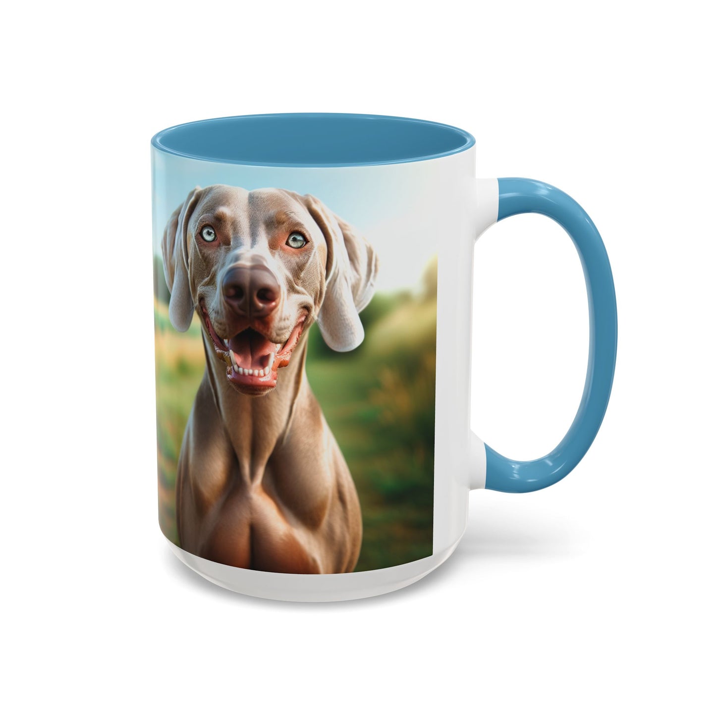 Weimaraner Accent Coffee Mug - Perfect Gift for Dog Lovers. This vibrant mug is microwave and dishwasher safe, with a glossy finish and eye-catching color contrast. Ideal for dog lovers, this mug is perfect for enjoying a cozy cup of coffee or tea during the holidays.